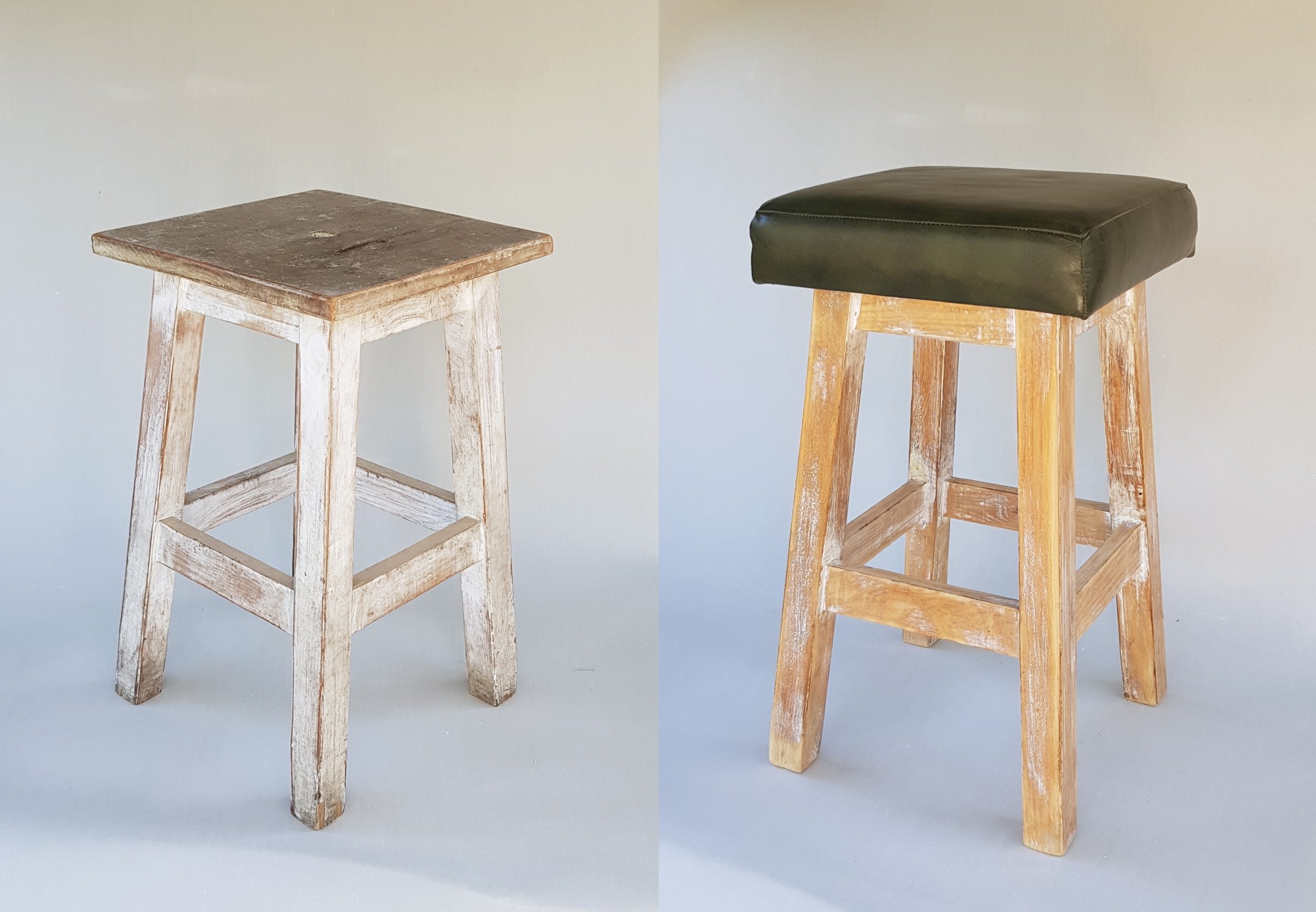 Restored and upholstered stools. Casa da Guia, Cascais.
