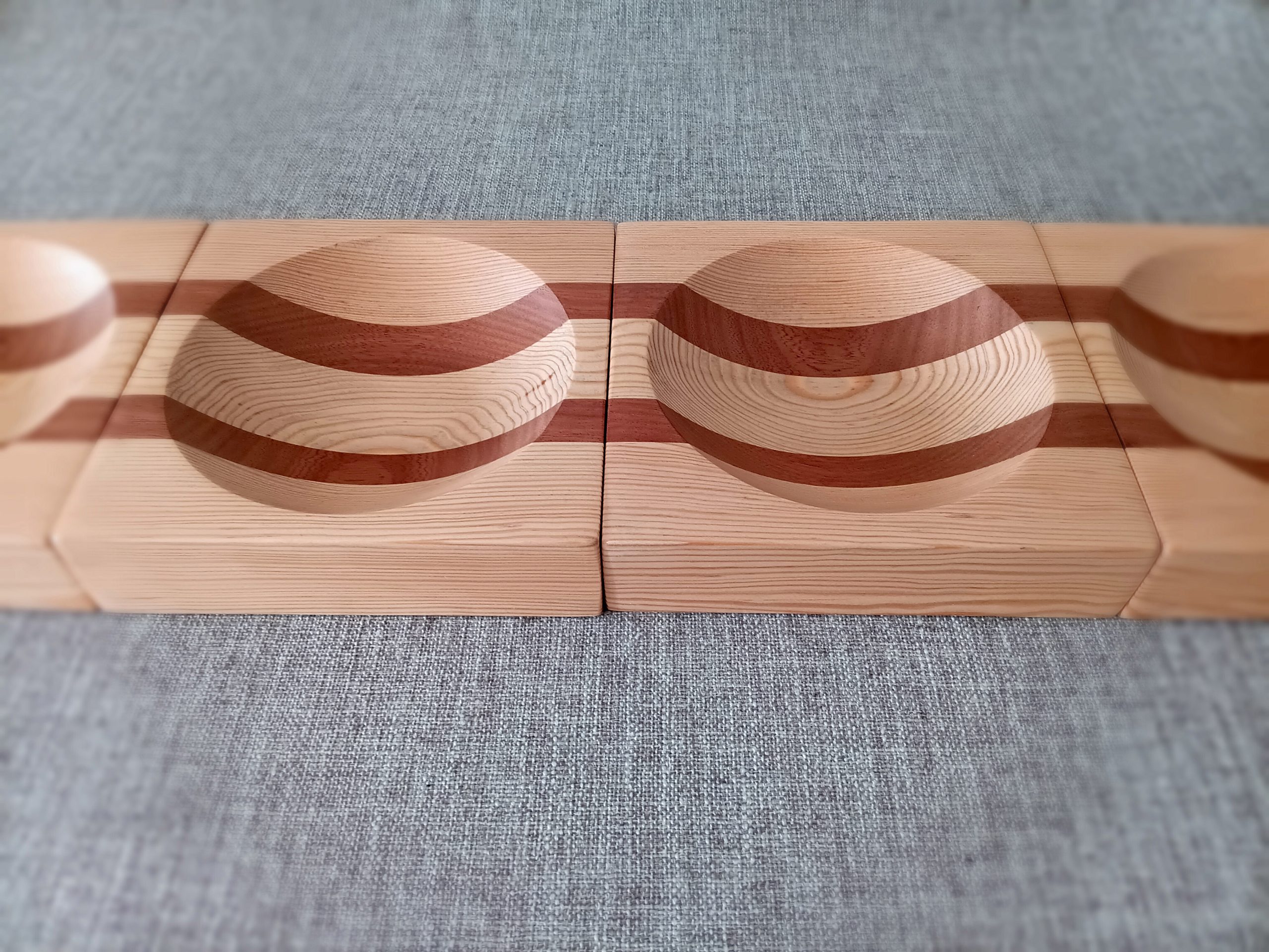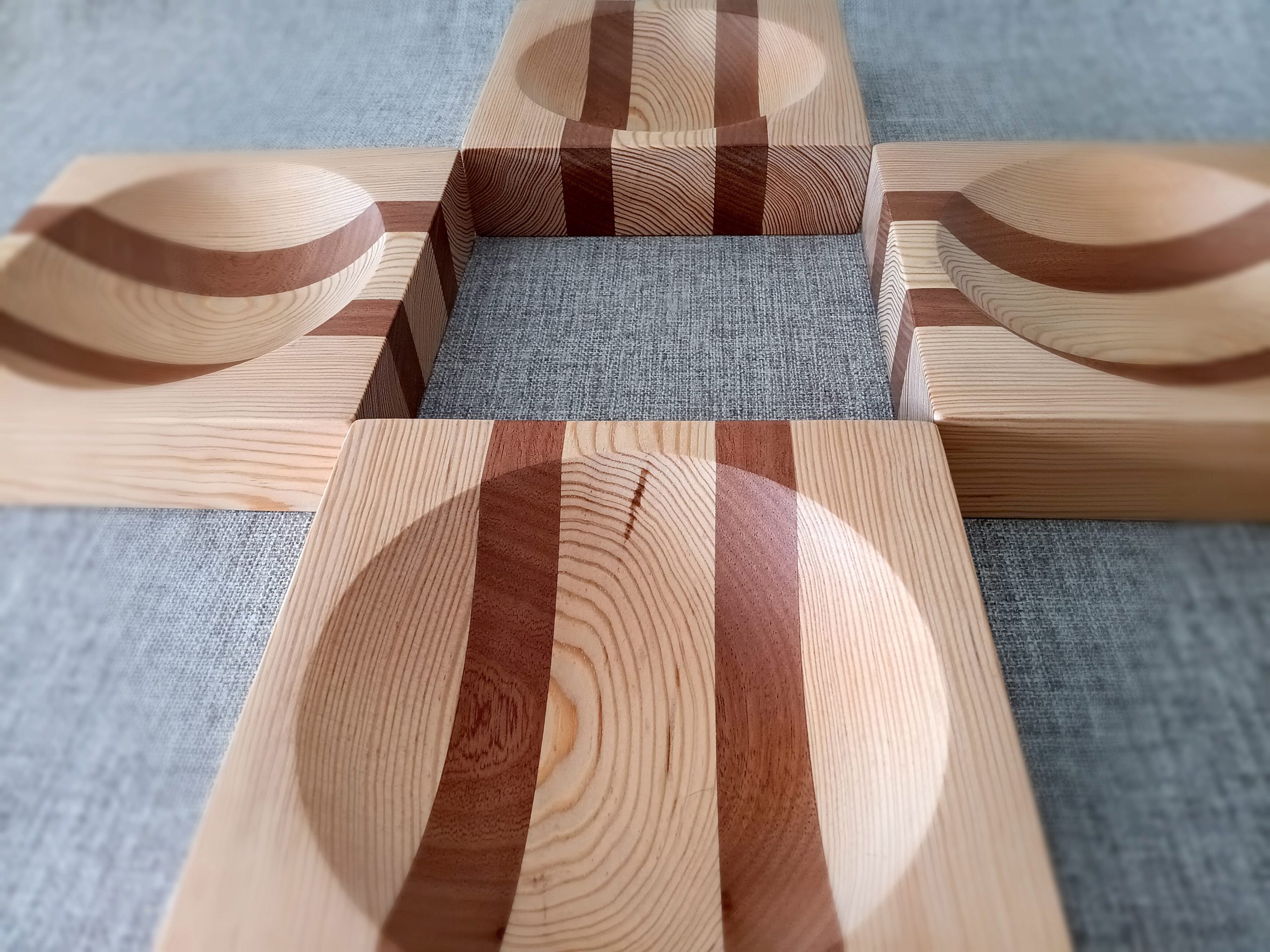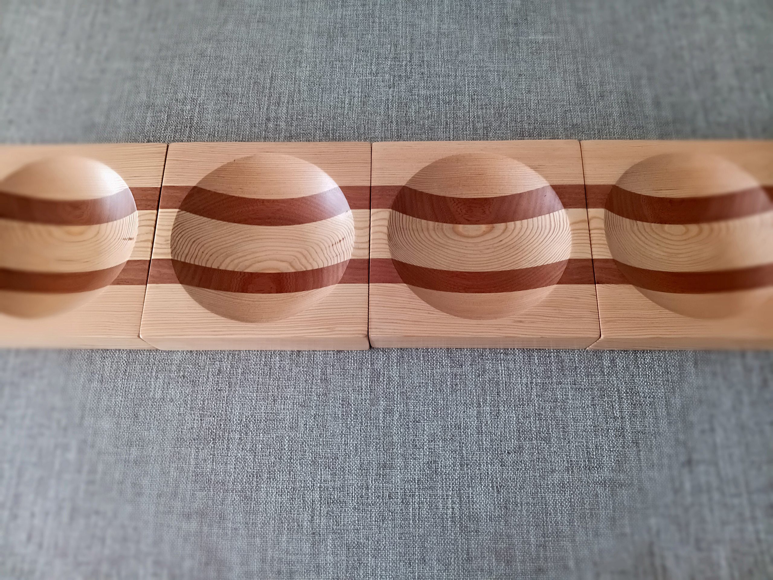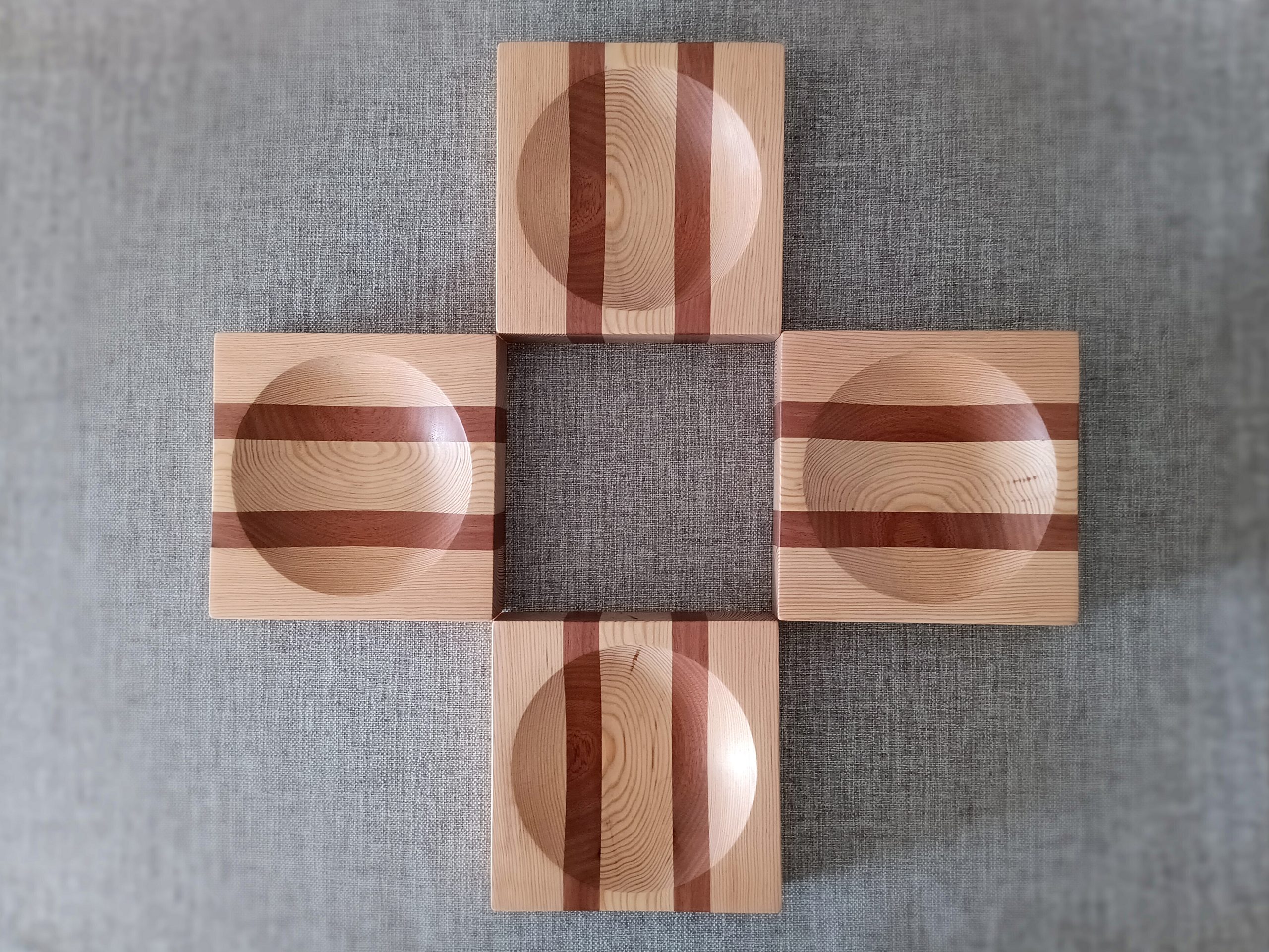 Set of four wooden bicolor plates